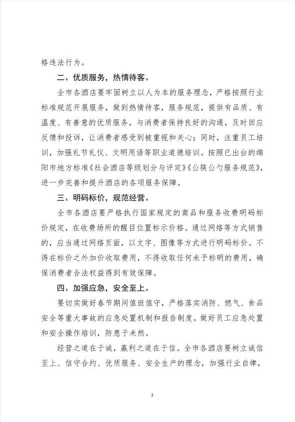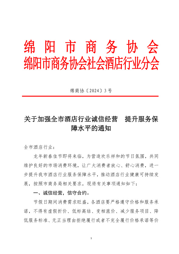 关于加强全市酒店行业诚信经营 提升服务保障水平的通知