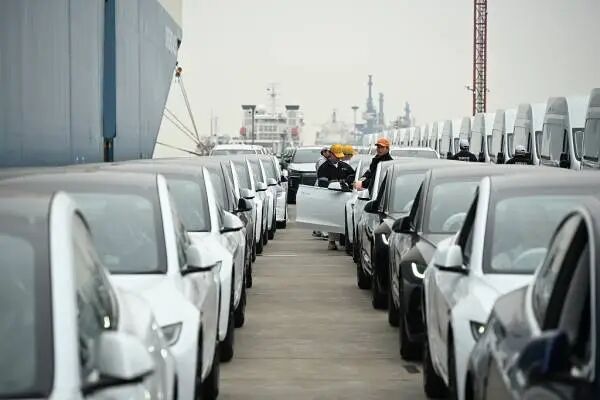 3月14日,上海海通国际汽车码头,准备出口的特斯拉新能源汽车。视觉中国(视觉中国)
