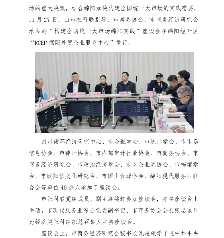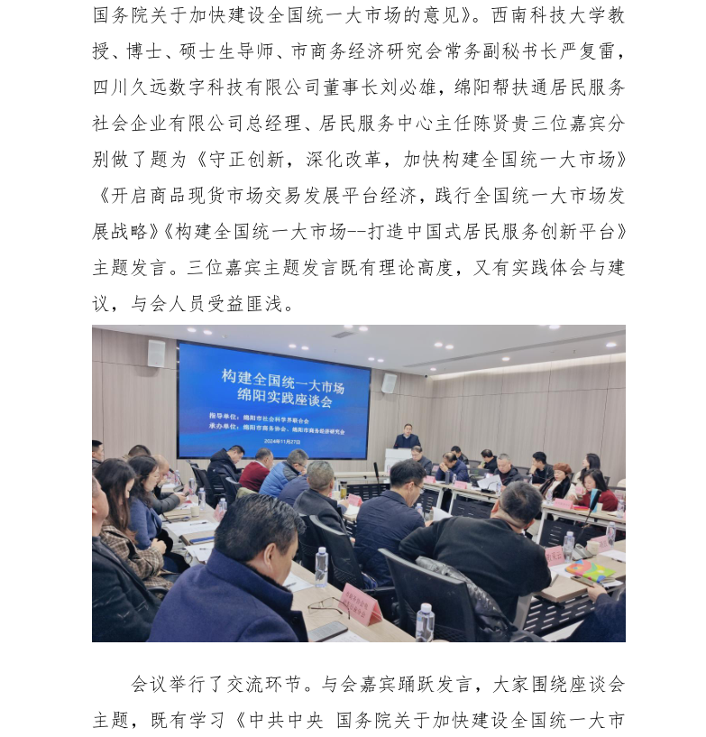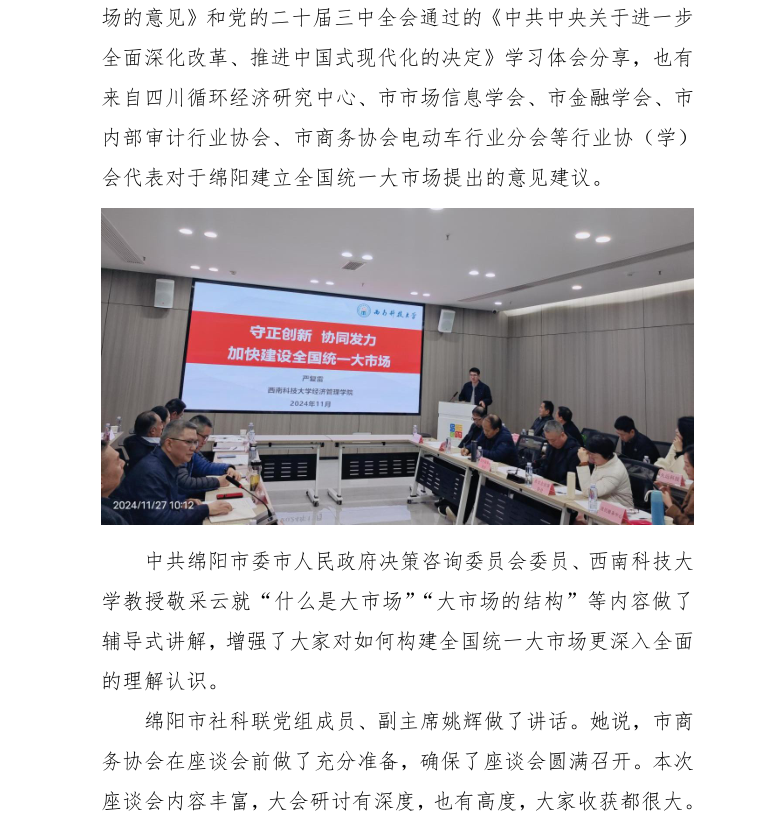 构建全国统一大市场绵阳实践座谈会圆满召开