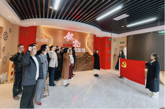 参观结束后,全体党员面对鲜红的党旗重温入党誓词。铿锵有力的誓言回荡在展厅内,既是对入党初心的回溯,也是对使命担当的重申,进一步坚定了党员们对党忠诚、为人民服务的信念。