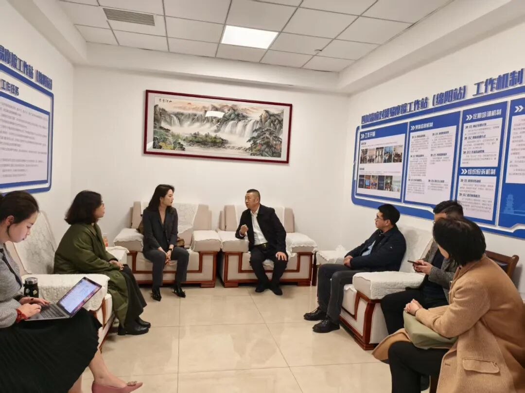 座谈会前,明炬总所涉外法律专业委员会主任许龄匀与明炬(绵阳)分所副主任何波带领总分所律师团队专程前往四川省应对贸易摩擦工作站(绵阳站)进行实地走访交流,参观工作站的办公环境,职能定位、服务目标及绵阳市外贸发展的整体情况,增强了合作信心。