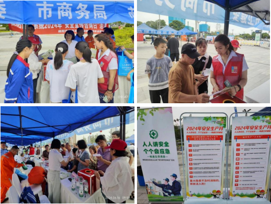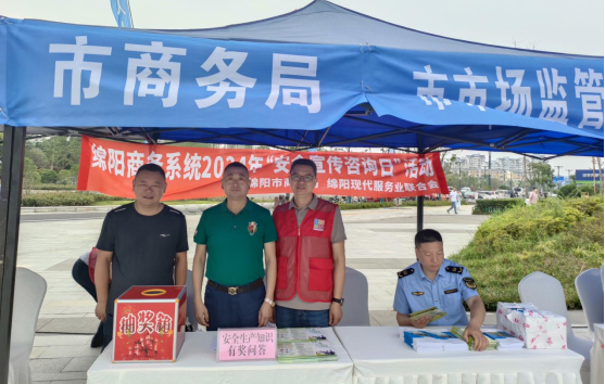 今年6月是第二十三个全国“安全生产月”,主题为“人人讲安全、个个会应急——畅通生命通道”。为进一步提升广大商户和居民遇到紧急情况时的应急处置能力,根据市上统一安排,6月16日上午,在市商务局指导下,绵阳现代服务业联合会组织各大商圈代表、商务协会志愿者,在经开万达广场参加了2024年绵阳市“安全宣传咨询日”活动。