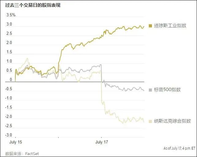 美国三大股指在7月15日至17日三个交易日走势 《华尔街日报》制图
