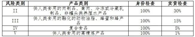 (3)规定了对进口农食产品检查频率的制订要求,并规定了基础参考检查频率,部分见下表。