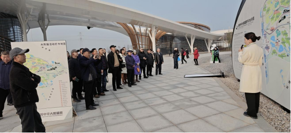 当天上午,专家一行在绵阳中华大熊猫苑专业讲解的带领下,实地了解了大熊猫苑的建设情况,科普了大熊猫的生物习性、在绵阳基地的生活状况等。据介绍,绵阳中华大熊猫苑占地1200余亩,现有大熊猫20余只,聚焦大熊猫繁育、保护与养老等职能,恒温设施、熊猫医院等硬件水平及科研规模位居全国第三,具备优质的文旅商融合发展资源载体,是绵阳市消费“三新”(新业态、新模式、新场景)建设重要引擎。